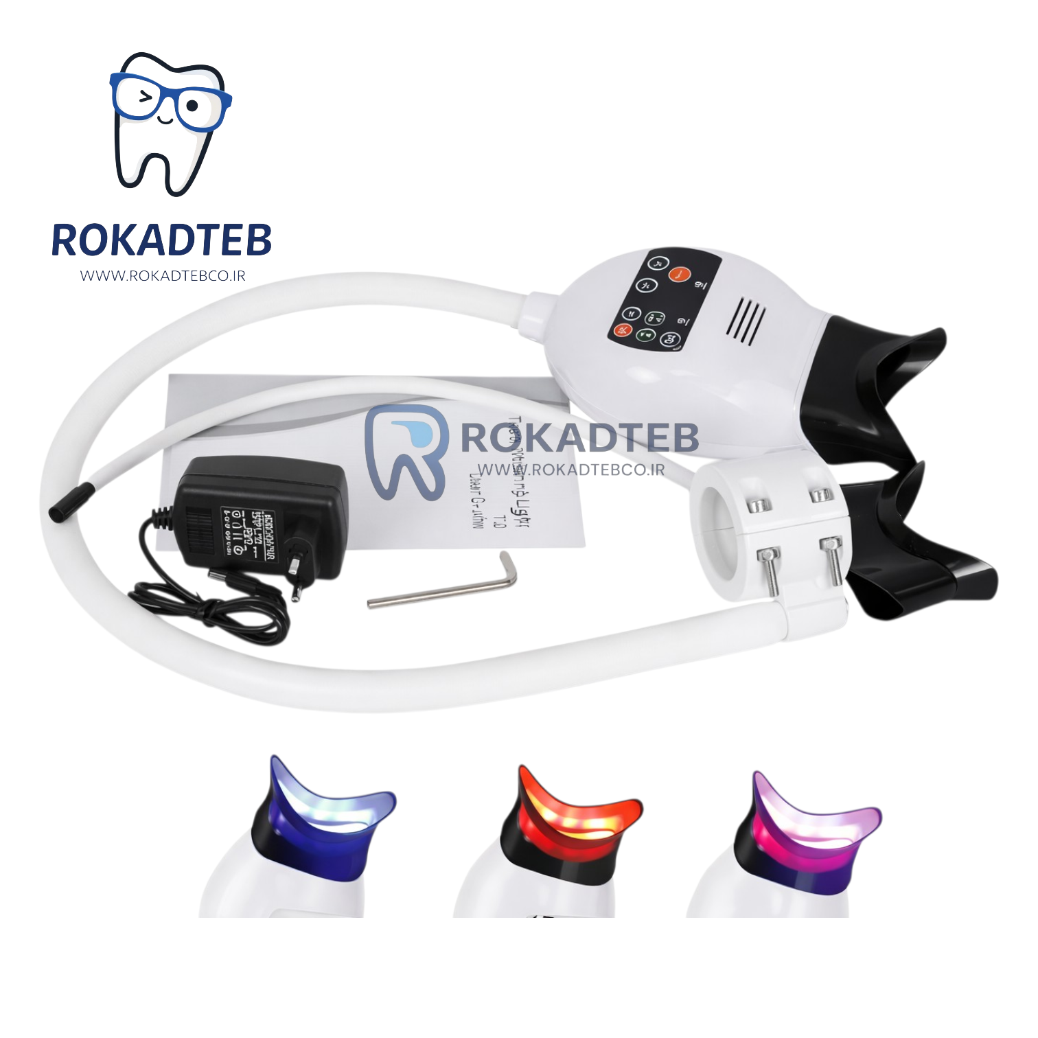 چراغ های LED این دستگاه بلیچینگ در رنگ های B(Blue) وR (Red) و P(Purple) و BRP(Blue,Red,Purple) قابل تنظیم می باشد.